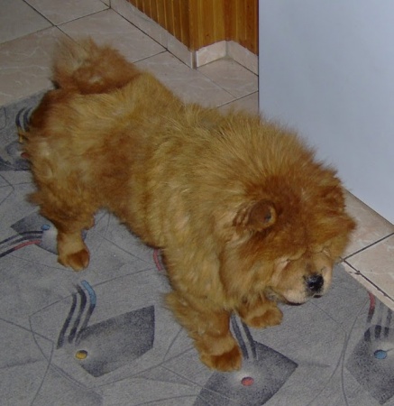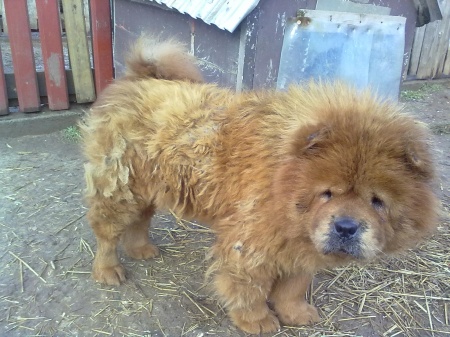 Fürdetés után nem készült kép, mert túl látványos változást nem sikerült elõidézni. Sok helyen kikopaszodott foltok vannak, rengeteg begyógyult sebmaradékot szedegettünk ki a bundájából és ezek helyén láthatóak a rövid, csillogó új bundakezdemények. A képeken nem látszik, de a feneke környékén teljesen kopasz,bár már kezd pihésedni. Gyanítom a kaja sem volt megfelelõ, amin tartották (fehérjeérzékenység), meg talán férges is lehetett, mert úgy nézett ki, mint ha egy oszlophoz dörgölte volna magát rendszeresen, ahogy a vakaródzó disznók szokták. Pár hónap, egy vedlési ciklus, szigorú "fehérjediéta" és egy "jó szõrben" lévõ csau lesz belõle.
